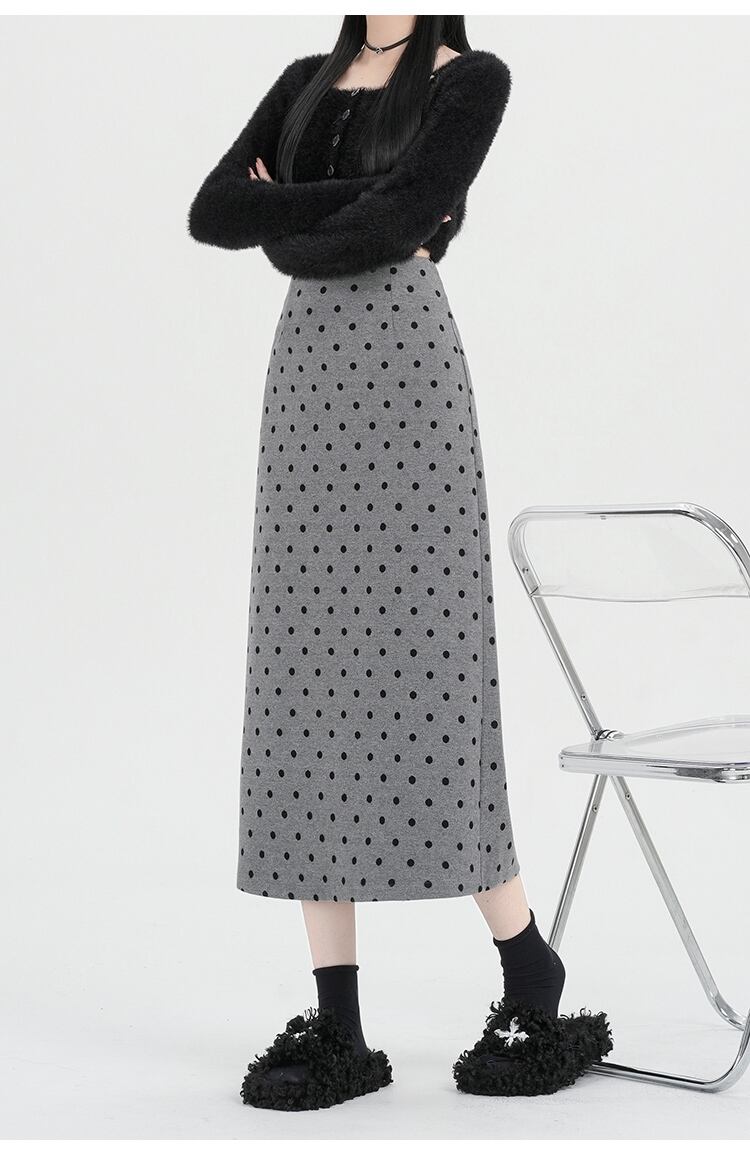 レディース スカート ロングスカート ミモレ ストレート Iライン バックスリット ファスナー ウエストゴム かわいい 大人可愛い カジュアル ガーリー ドット柄 水玉 秋 冬 デート お出かけ 休日 楽ちん