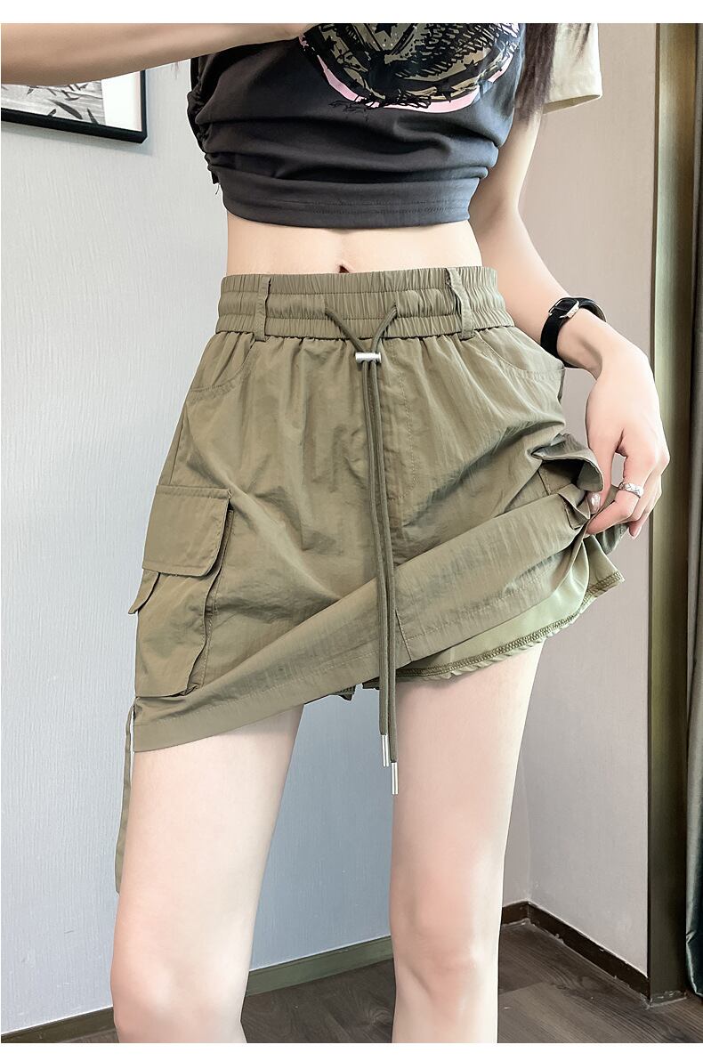 レディース パンツ ボトムス カーゴパンツ ハーフ ワイド ポケット ドローコード イージーウエスト 大人可愛い カジュアル おしゃれ かっこいい こなれ感 ルーズ ワーク 夏