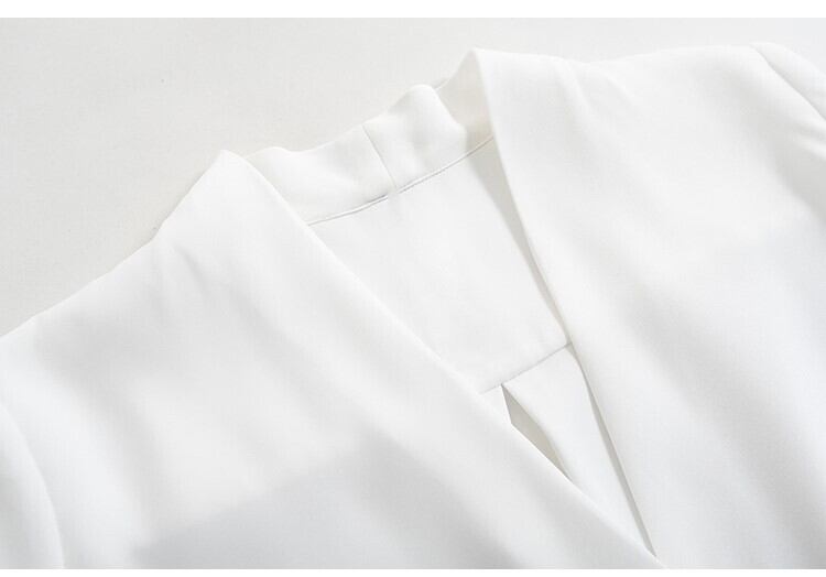 レディース トップス ブラウス 長袖 Vネック 襟なし ノーカラー きれいめ シンプル 上品 エレガント とろみ感 かっちり 都会的 無地 春 秋 オフィス ビジネス OL 通勤 着回し 清楚 定番 ホワイト