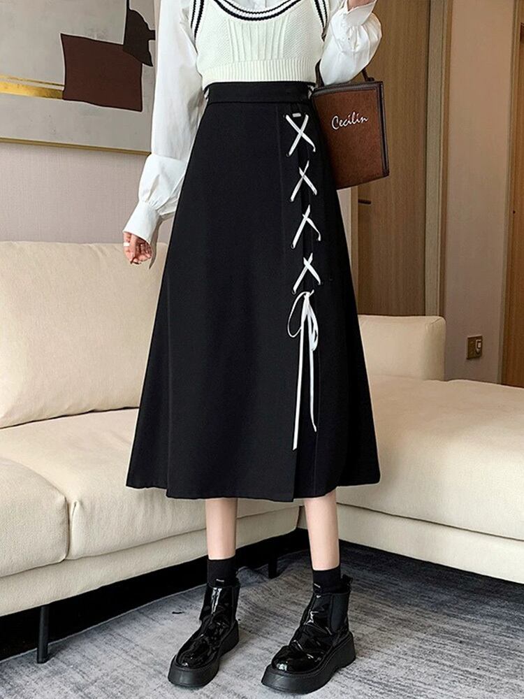 ウエストのリボンがアクセントになった、女性らしいフレアスカート。ハイウエストデザインでスタイルアップ効果も抜群です。柔らかな素材感が心地よく、歩くたびに揺れるシルエットが魅力。シンプルなデザインなので、どんなトップスとも合わせやすく、デイリー使いにぴったり。韓国ファッションがお好きな方におすすめです。カジュアルなTシャツからブラウスまで、合わせるアイテムによって様々な表情を楽しめる万能アイテム。デートやショッピングなど、様々なシーンで活躍します。