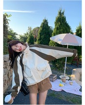 スポーティーでカジュアルな印象を演出するレディースジャケット。ミディアム丈のラグランスリーブが動きやすさとスタイリッシュさを兼ね備え、幅広いコーデにぴったりです。軽量なウィンドブレーカー仕様で、季節の変わり目にも最適。前開きタイプでサッと羽織れるため、デイリー使いに便利。ポケットも完備し、機能性とおしゃれさを両立。バイカラーが映える、ラフな大人カジュアルアイテムです。