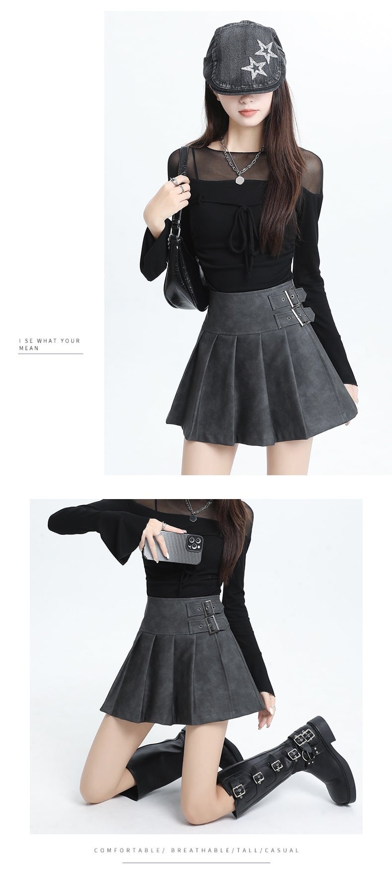 スタイリッシュで大人可愛いプリーツスカート。ミニ丈のAラインデザインは、クールでワイルドな印象を与えつつ、フェイクレザーの素材感が洗練された雰囲気を演出します。お出かけやデート、コンサートなど幅広いシーンに合わせやすく、主役級の存在感を放つアイテムです。秋冬のコーディネートにもぴったりで、脚長効果も叶えます。