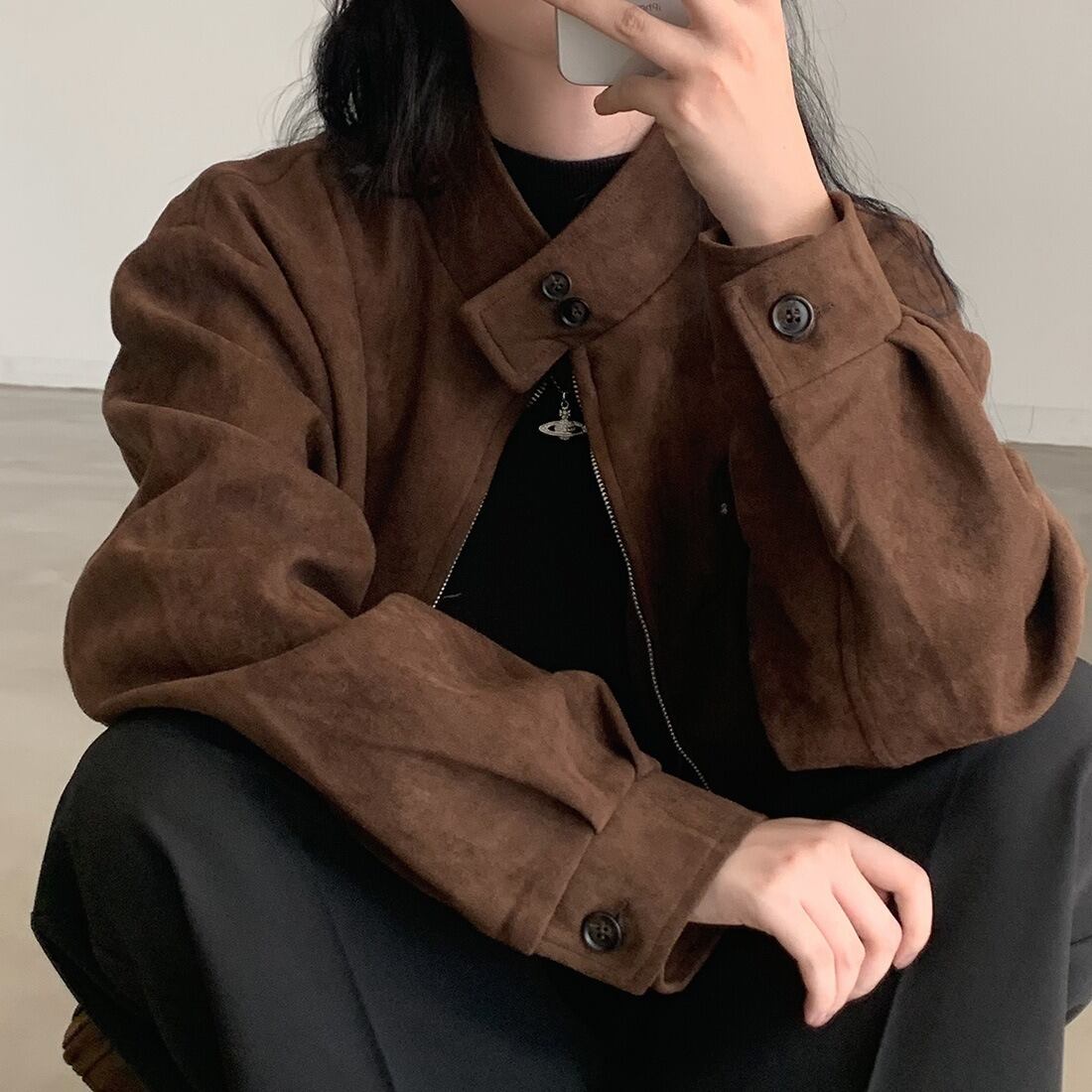 レディース トップス ジャケット アウター 羽織 前開き 長袖 中厚手 カジュアル かっこいい 秋 冬 ユニセックス 学生 デート 韓国 オルチャン 着回し ゆったり フリーサイズ ブラック ブラウン