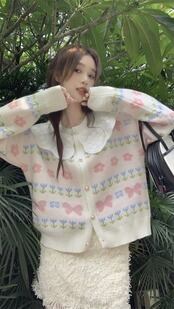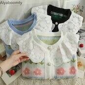レディース セーター 長袖 襟付き レース 刺繍 フリル かわいい おしゃれ レトロ ガーリー ラブリー 春 秋 冬 デート 女子会 韓国 コーデ 楽ちん 暖かい 防寒 体型カバー 普段使い 着回し