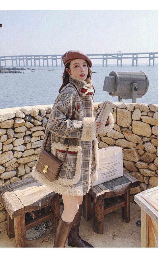 レディース コート アウター 裏起毛 ウールロングコート ウール 長袖 もこもこ ふわふわ 厚手 裏起毛 綿 かわいい 大人可愛い きれいめ シンプル カジュアル おしゃれ チェック 秋 冬 休日 暖かい 防寒 S M L ブラウン