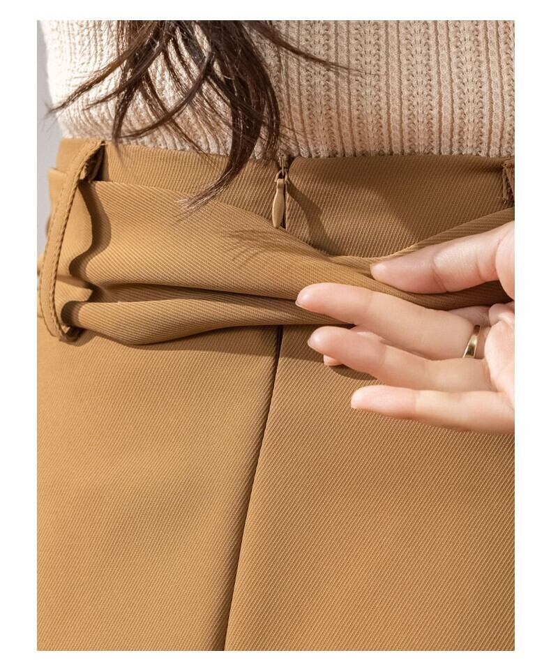 レディース スカート 膝丈 膝下 Aライン タック ウエストマーク ウエストリボン ファスナー ポケット ハイウエスト きれいめ シンプル 上品 無地 オールシーズン オフィス ビジネス OL 通勤 脚長