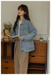 【カジュアルに決まる!胸元の刺繍が可愛いデニムジャケット】