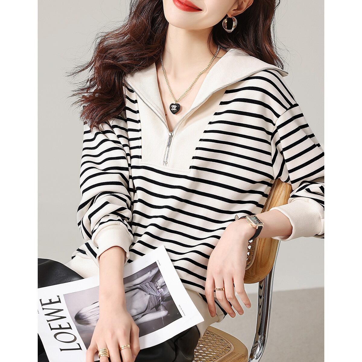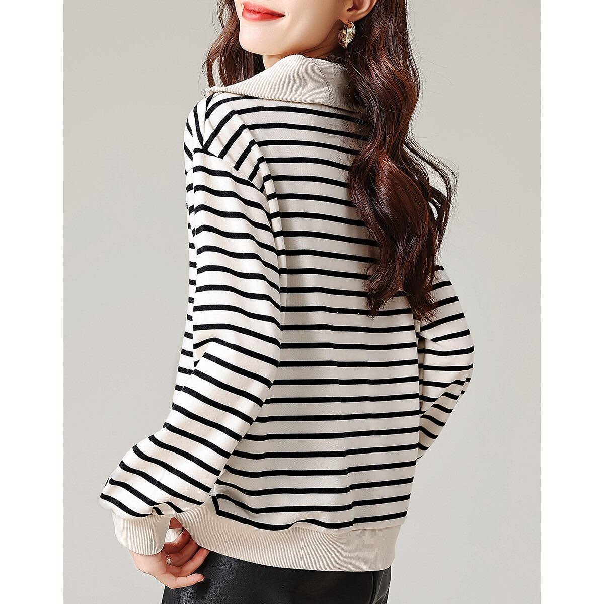 この秋冬、新しいコーディネートの主役になるレディースニットトップスが登場しました!ボリューム袖と襟付きデザインが特長で、程良い中厚手の素材感であたたかく、着心地も抜群です。カジュアルなボーダー柄が、日常使いはもちろん、学生生活やお出かけシーンにぴったりの一着です。大人可愛いスタイルを楽しんで、毎日のコーディネートをアップデートしましょう!