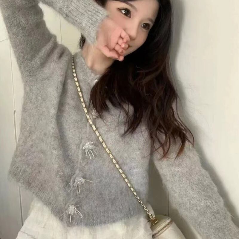 レディース トップス ニット カーディガン 長袖フェミニン もこもこ ふわふわ かわいい 大人可愛い きれいめ シンプル おしゃれ 無地 秋 冬 お出かけ 女子会 休日 オルチャン コーデ 暖かい 防寒 S M L ホワイト グレー