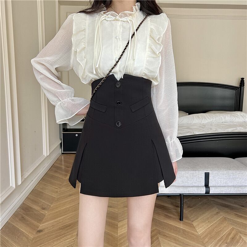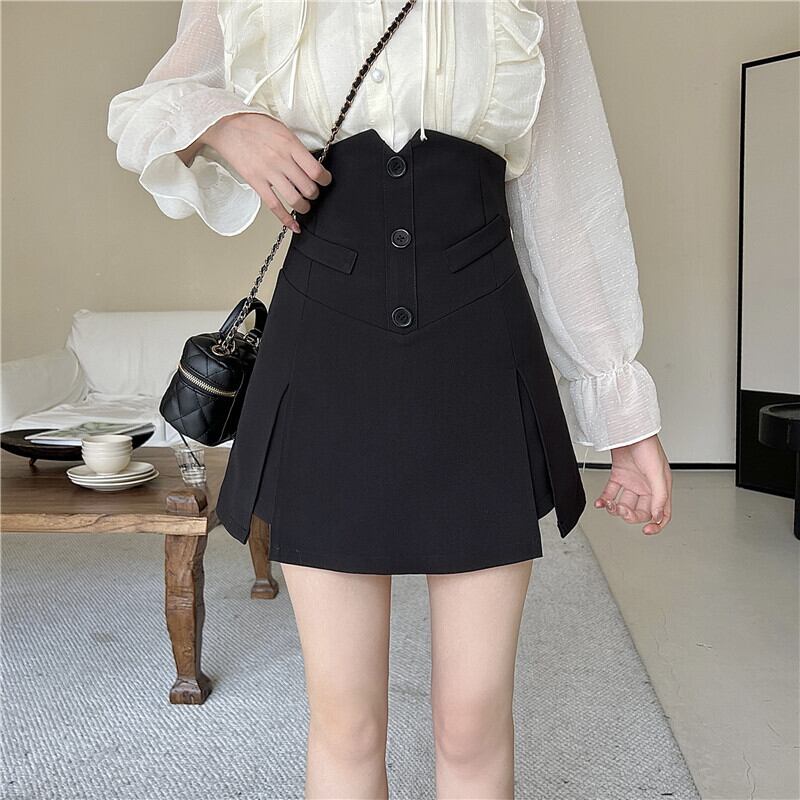 レディース スカート ミニ Aライン タック タックプリーツ ウエストマーク ファスナー ハイウエスト ボタン かわいい カジュアル 上品 おしゃれ ガーリー 個性的 無地 デート お出かけ 休日 ショッピング カフェ