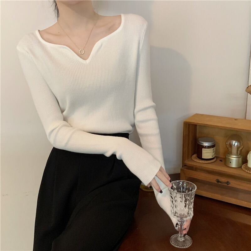 レディース ニット リブ 長袖 Vネック 薄手 きれいめ 上品 抜け感 無地 秋 冬 ママ OL 学生 韓国 清楚 トレンド S M L XL ホワイト ブラック アプリコット カーキ ブラウン グリーン